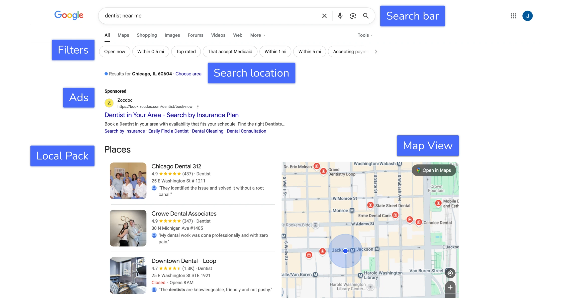 Was normalerweise passiert: Ein Zahnarzt entscheidet, dass er für „bester Zahnarzt” ranken möchte, erstellt Inhalte rund um diesen Begriff und wundert sich, warum es nicht funktioniert. Währenddessen suchen Menschen in seiner Gegend nach „Zahnarzt nähe Innenstadt”, „Zahnschmerzen Notfall” und „Zahnreinigung Düsseldorf”.