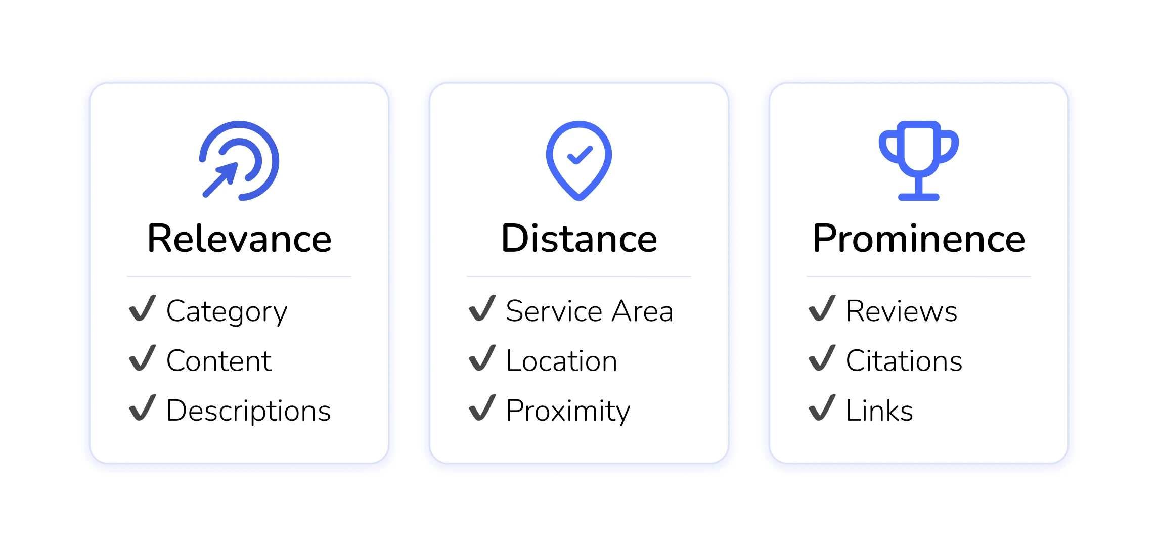 Google verwendet drei Hauptsignale, um zu entscheiden, welche Unternehmen in lokalen Suchergebnissen erscheinen. Diese zu verstehen ist wie der Antwortschlüssel für lokales SEO:
