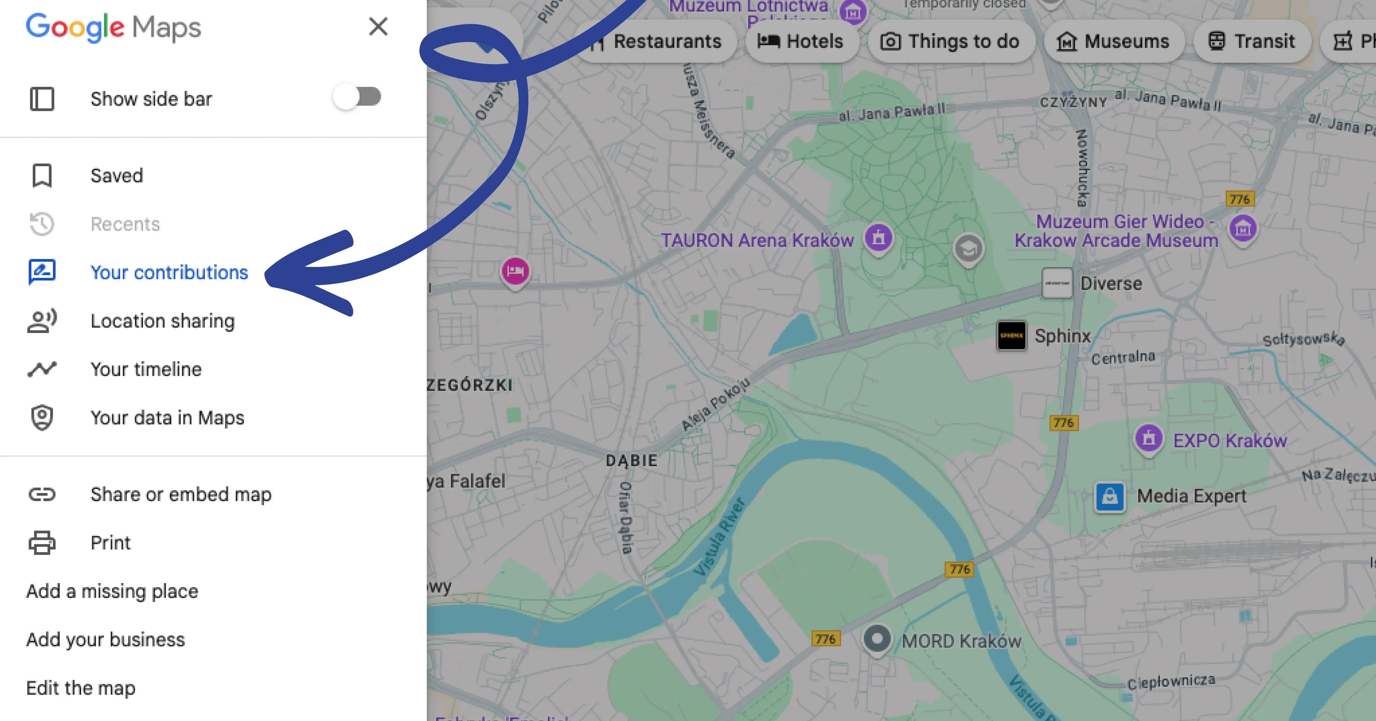 In diesem Schritt müssen Sie auf das Menü in der oberen linken Ecke klicken. Sie finden es in einem Feld, in das Sie den gewünschten Ort eingeben können.