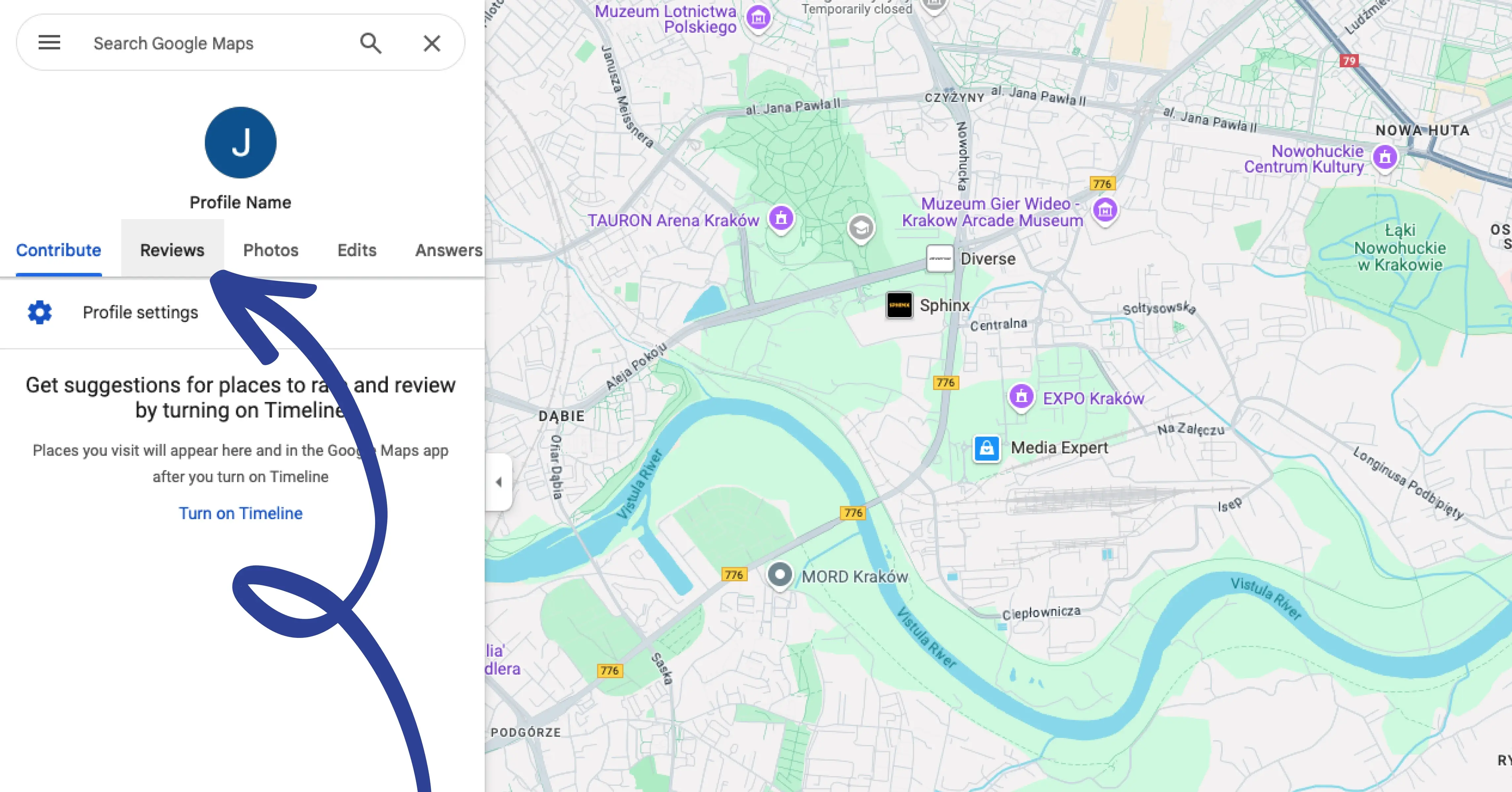 Überprüfen Sie in Google Maps in der oberen rechten Ecke, ob Sie bei dem richtigen Google Business-Konto angemeldet sind, von dem aus Sie die Meinung hinzugefügt haben, die Sie löschen möchten.