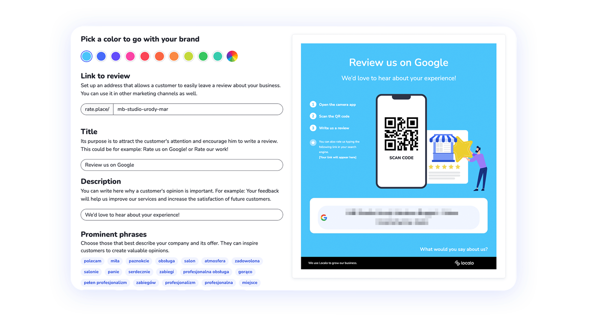 In Localo: Sie erfahren, ob die durchschnittliche Meinung über Ihr Unternehmen ausreicht und ob Sie Bewertungen von Ihren Kunden einholen können. Diese Analyse erspart Ihnen viel Zeit und manuelle Arbeit.