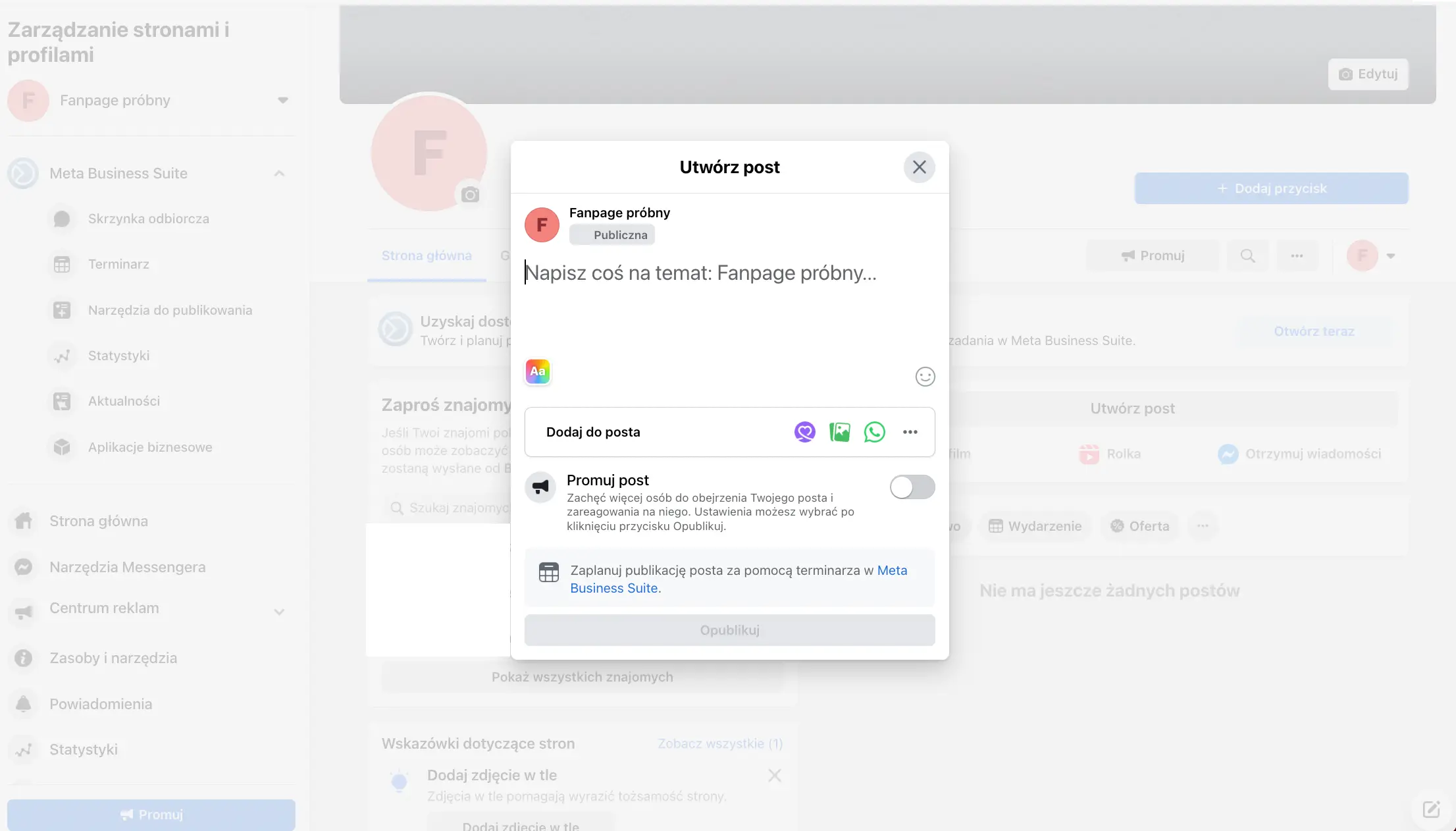 - Erstellen Sie einen Post . Sie können sofort damit beginnen, Ihre Community aufzubauen und das Engagement zu steigern. Durch das regelmäßige Hinzufügen von Posts bleiben die Nutzer Ihrer Seite interessiert – optimal sind 1–2 Posts pro Woche.