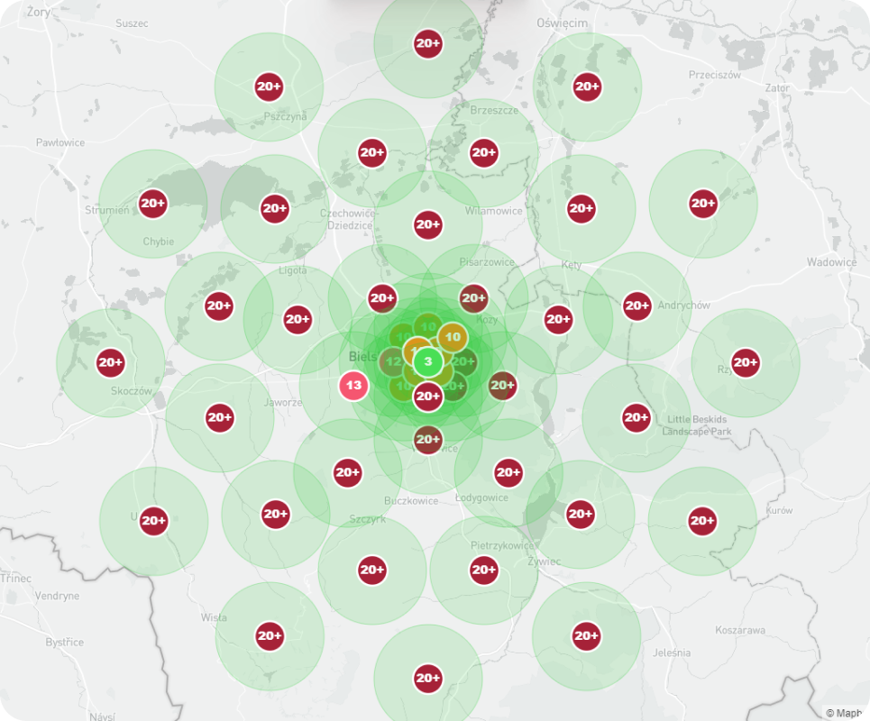 Die Verbesserung der Sichtbarkeit des Unternehmens ist im lokalen SEO-Raster deutlich zu erkennen: