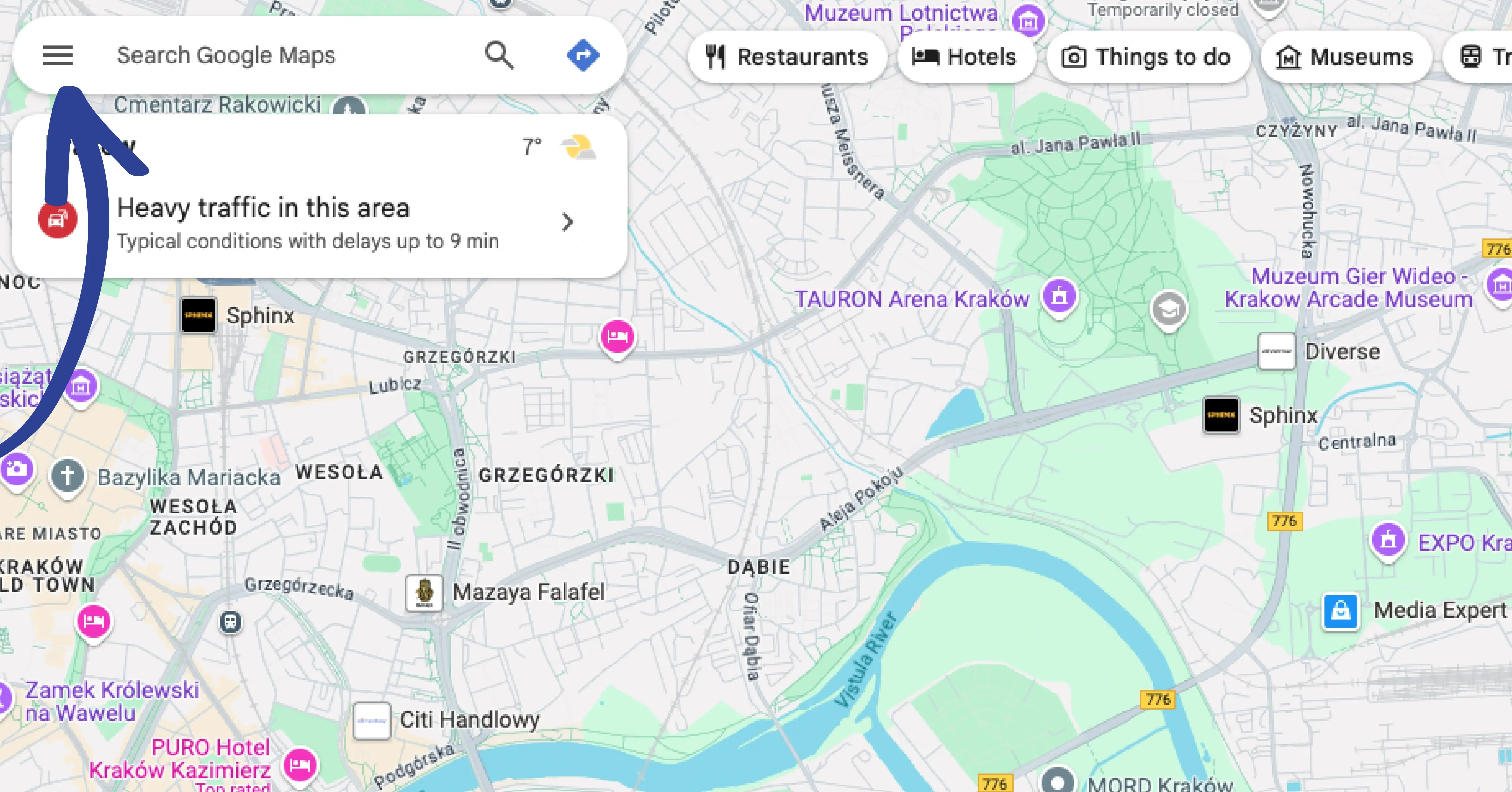En este paso, debe hacer clic en el menú, que se encuentra en la esquina superior izquierda. Lo encontrará en un cuadro donde puede ingresar el lugar que desee.