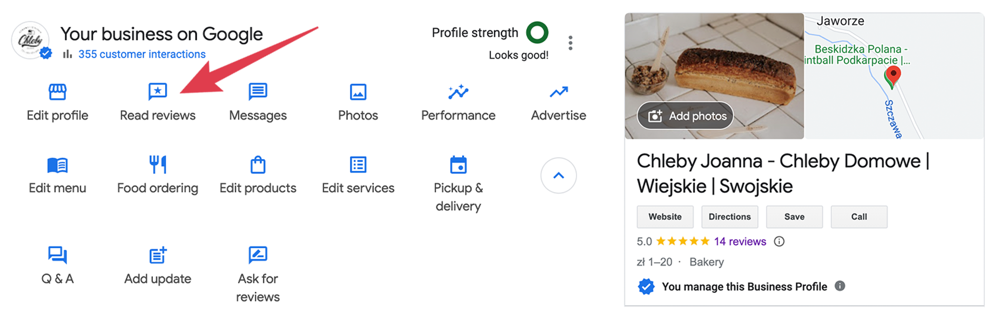 1. En la vista de perfil de empresa de Google, haga clic en: Leer reseñas