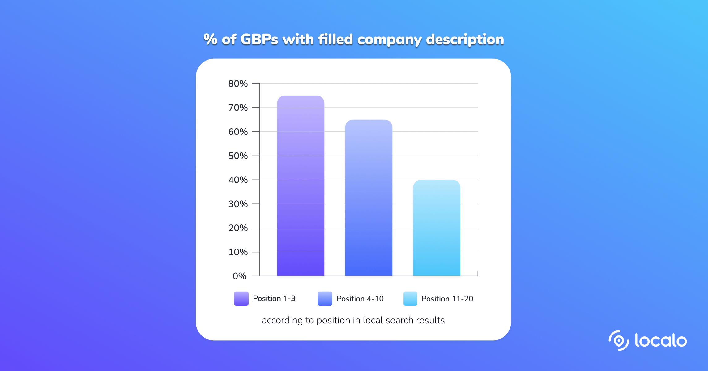 Posición 1-3: Alrededor del 75% de las empresas de las primeras posiciones en Google tienen una descripción completa de la empresa en su perfil.