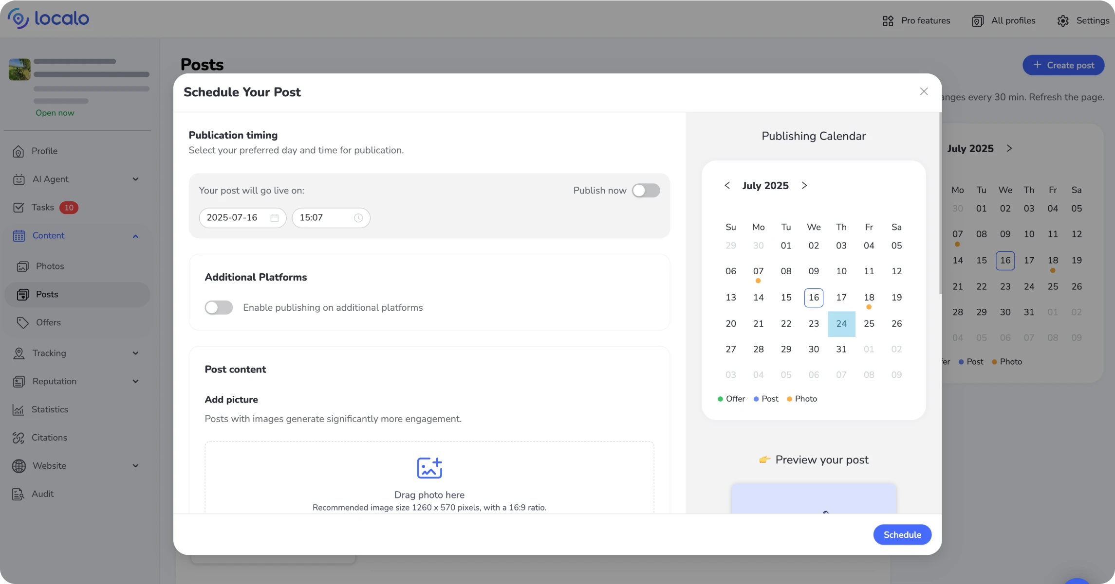 En lugar de gestionar múltiples tableros y hojas de cálculo, herramientas como las estadísticas de Localo consolidan todas tus métricas de SEO local en un lugar, haciendo fácil detectar tendencias y medir el impacto de tus esfuerzos de optimización.