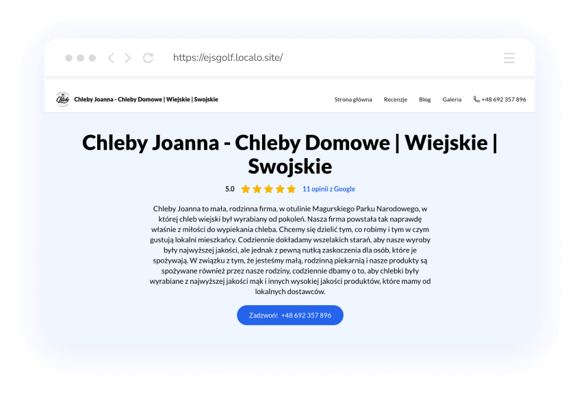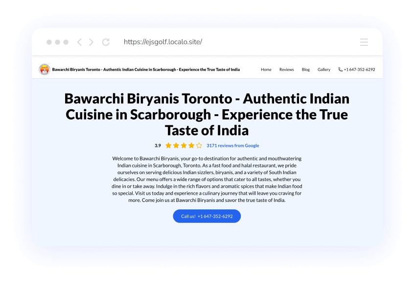 Crea un sitio web profesional que atraiga a clientes locales con solo unos clics. Nuestro creador de sitios web gratuito hace el trabajo pesado por ti—extrayendo automáticamente información de tu Perfil de Empresa de Google y creando un sitio completo con tu contenido, fotos y reseñas de clientes. No se requieren conocimientos técnicos.