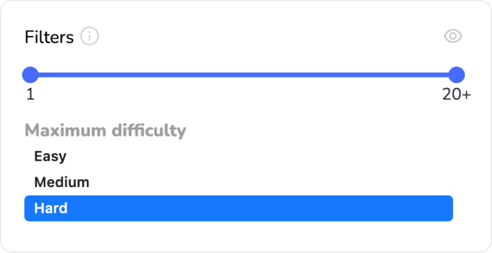 Usa el deslizador de posiciones y configuraciones de dificultad para ver solo esas áreas donde las mejoras serán más fáciles. Perfecto para priorizar ubicaciones en las que trabajar primero.