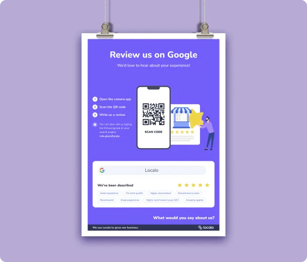 Coloca tu póster estratégicamente y observa cómo las reseñas llegan automáticamente—sin tener que perseguir a los clientes para obtener comentarios.