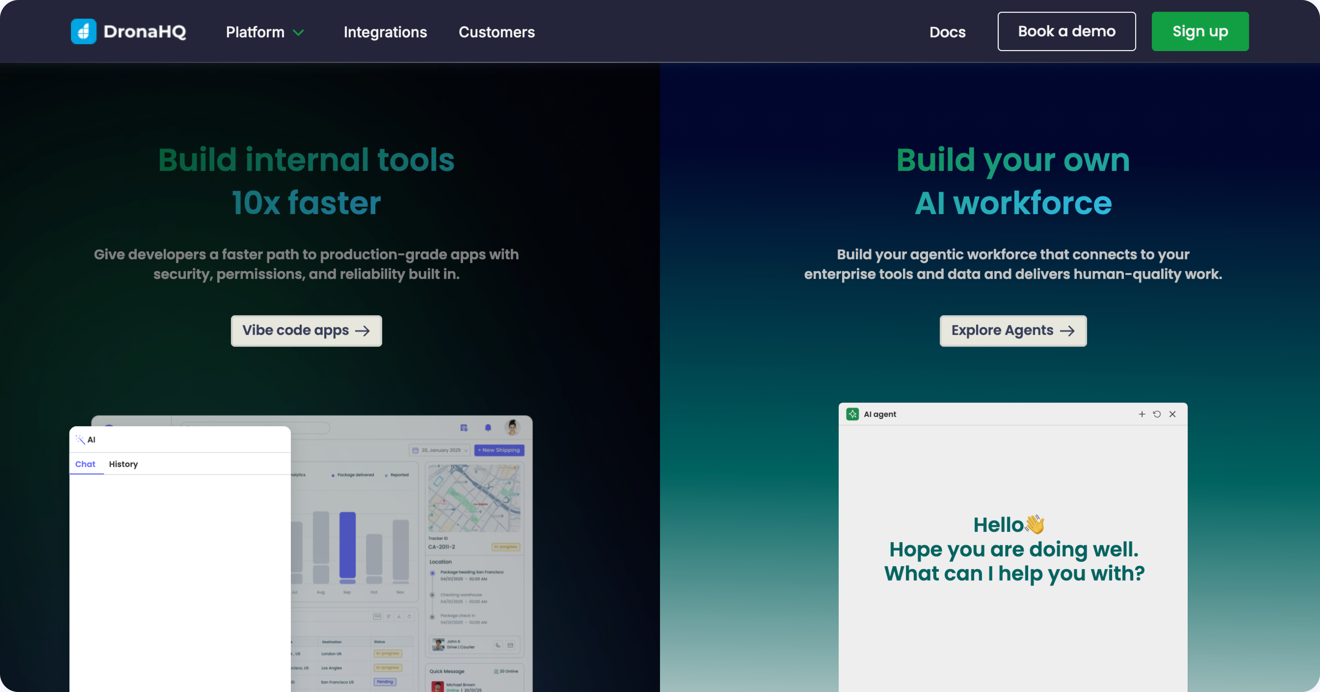 DronaHQ est une plateforme low code alimentée par l’IA pour créer des outils internes, des panneaux d’administration, des tableaux de bord et des applications métier pour le web et le mobile. Les développeurs peuvent connecter leurs sources de données, utiliser des composants UI pré-construits et accélérer le développement avec VedaAI, qui génère des écrans d’application, des liaisons de données et de la logique à partir de prompts ou de références de design. Les applications peuvent être affinées par glisser-déposer ou code personnalisé, rendant la livraison plus rapide et plus facile pour les équipes d’ingénierie.