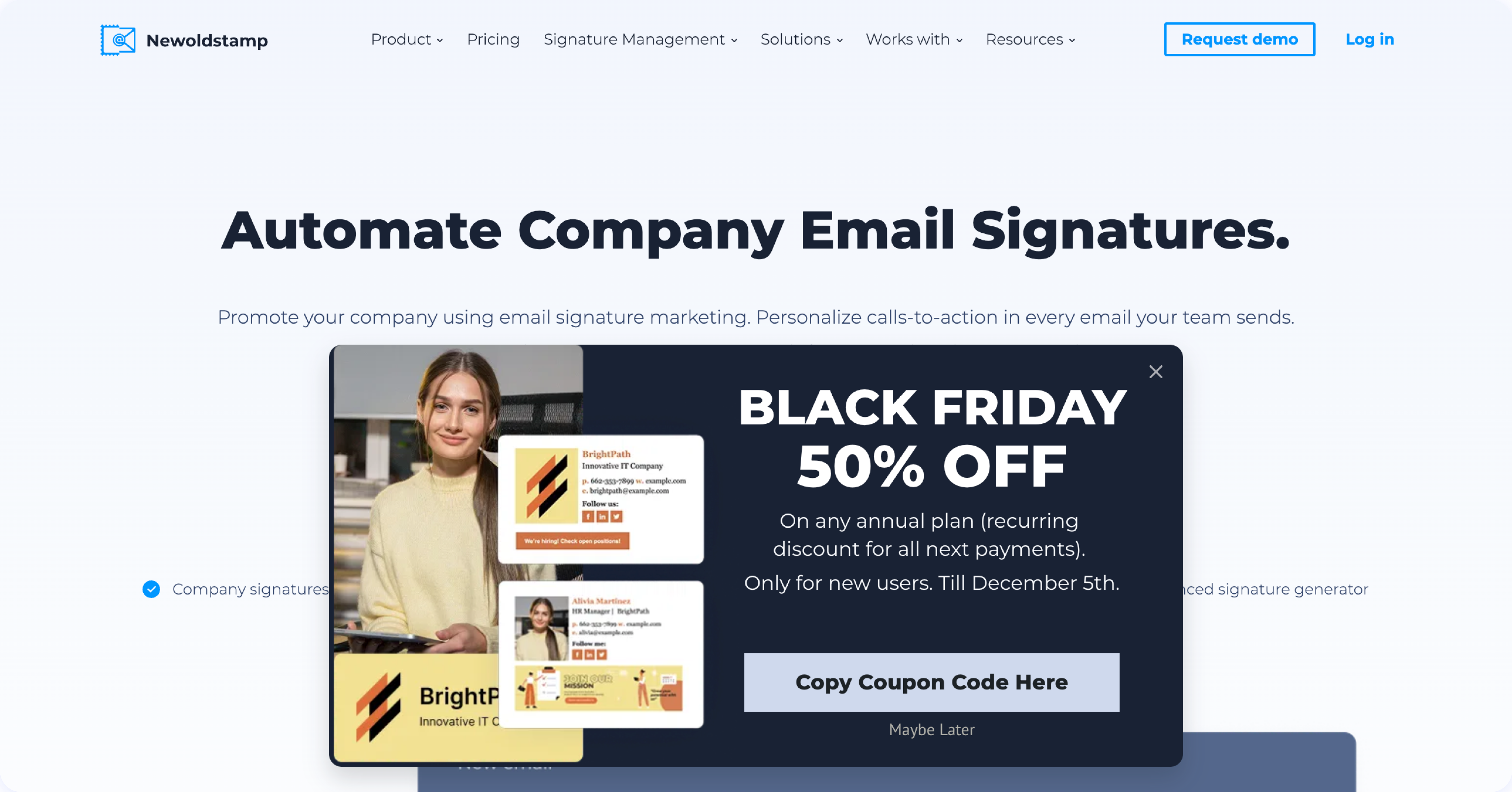 Newoldstamp est la principale plateforme de gestion de signatures d’e-mail qui permet de concevoir et de mettre en œuvre sans effort des signatures cohérentes avec la marque dans toute l’organisation.
