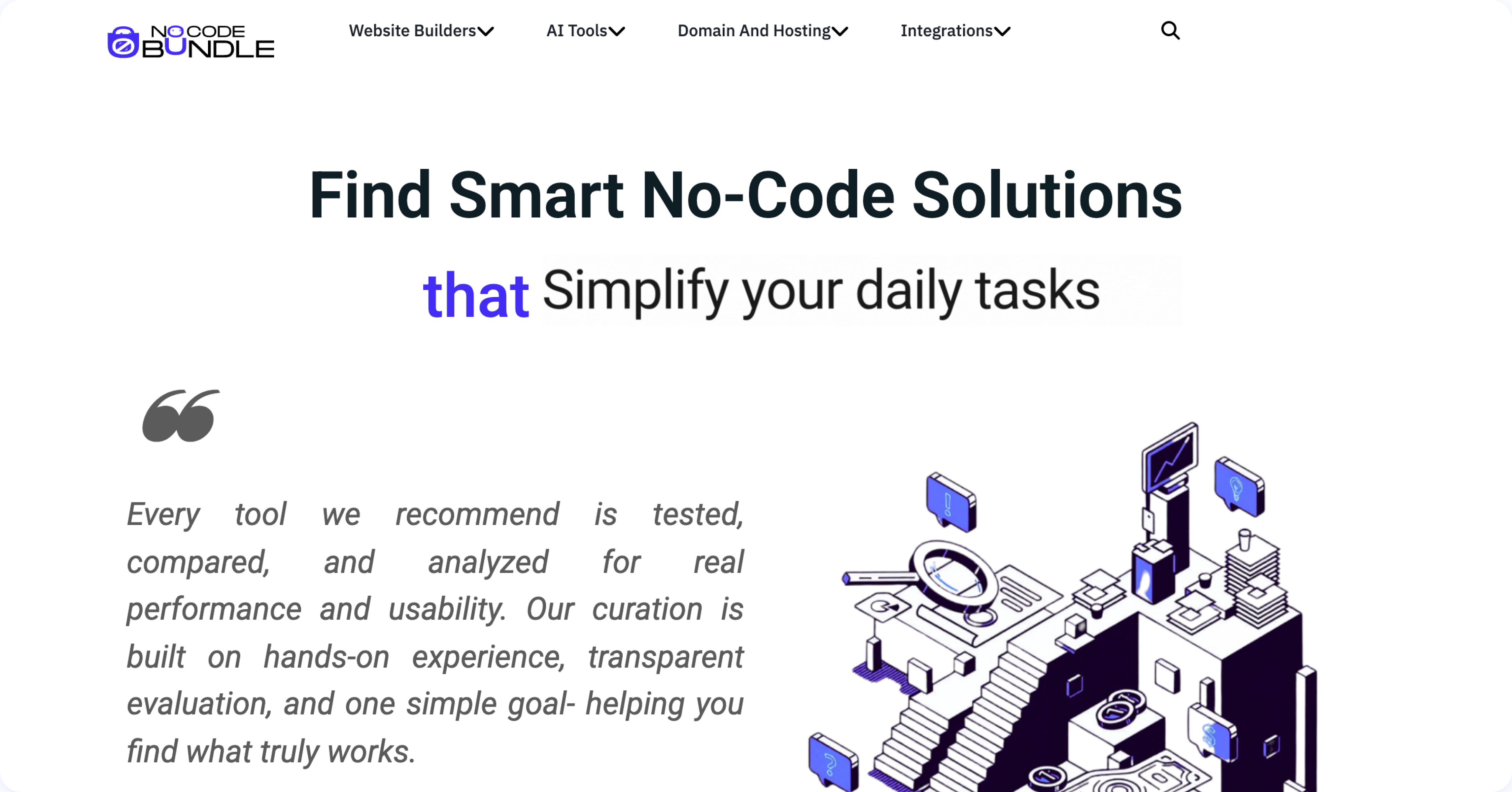 NoCodeBundle est votre hub de référence pour découvrir les meilleurs outils no-code, applications IA, plateformes SaaS et bundles sélectionnés pour chaque flux de travail.