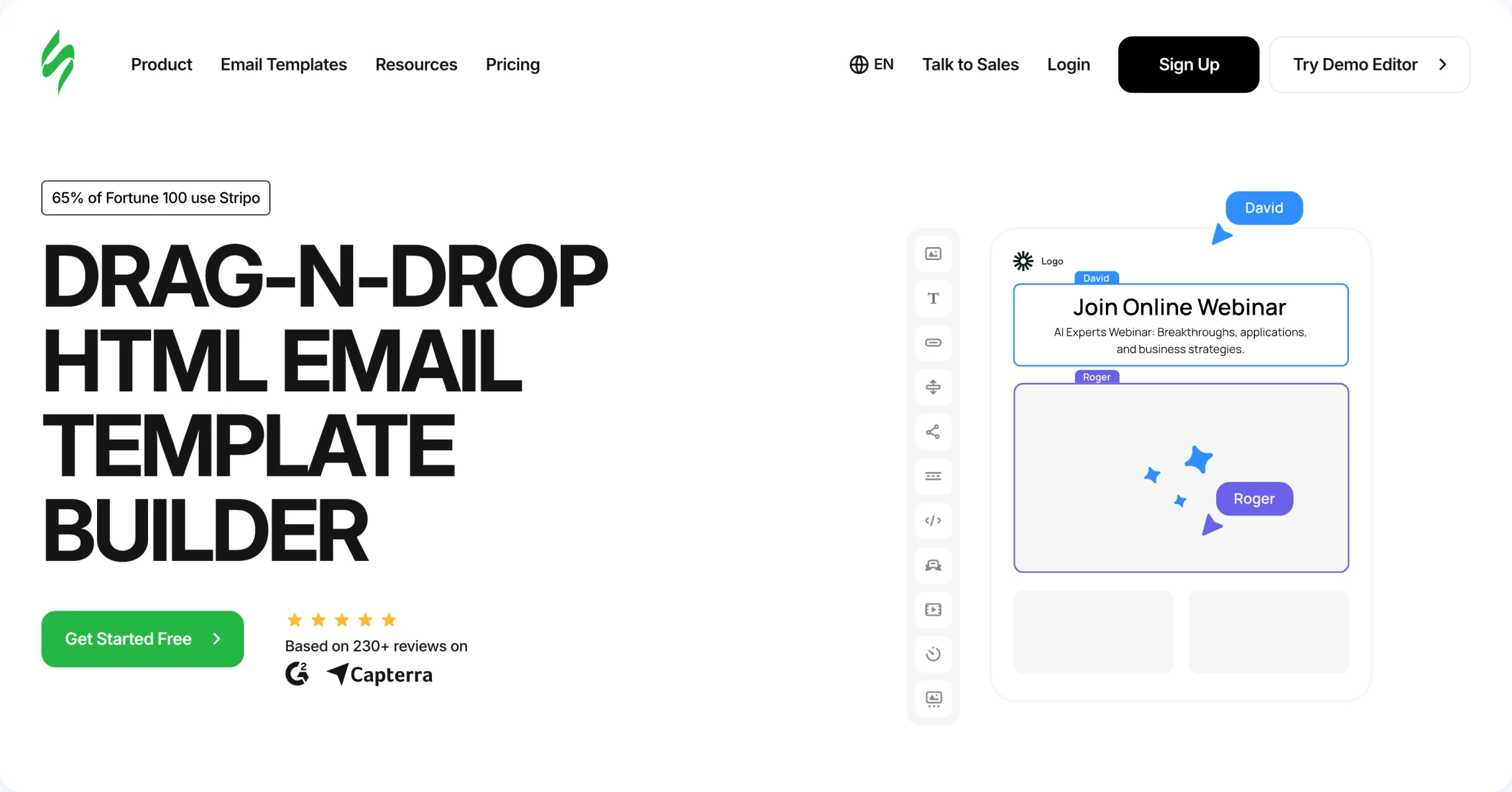 Stripo est une plateforme de conception d’e-mails tout-en-un pour créer des e-mails de toute complexité très rapidement. Intégrée à 90 ESP/CRM, ce qui vous permet de transférer vos e-mails vers votre système d’automatisation marketing en un seul clic. Un certain nombre de micro-outils intégrés vous donnent tout ce dont vous avez besoin pour les e-mails, des éditeurs de photos aux générateurs de bannières, des minuteurs à l’interactivité et au contenu en temps réel.