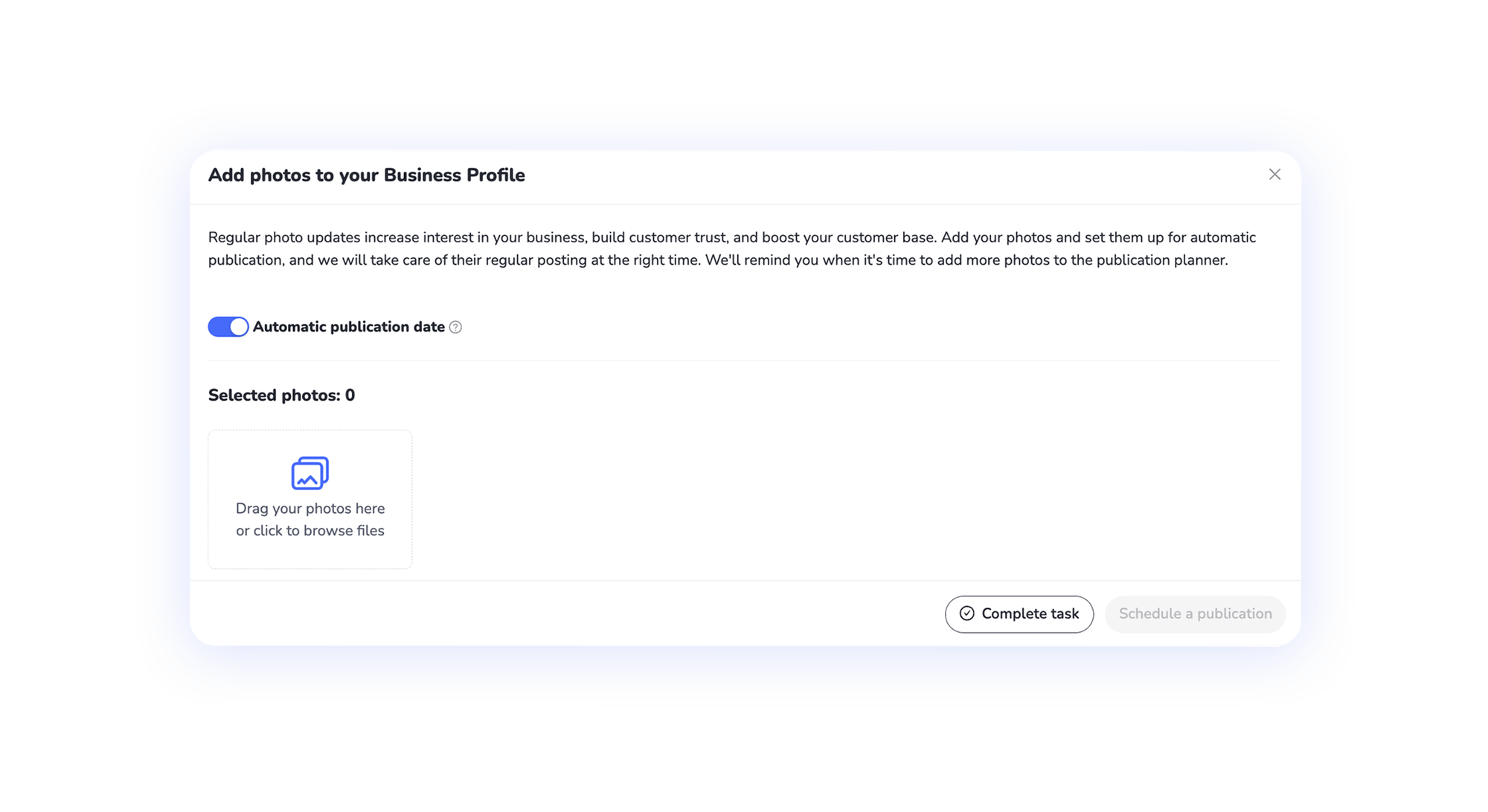 I Localo : Vous recevez des directives toutes prêtes pour savoir quand publier un message sur votre profil d’entreprise et quels mots doivent y figurer. En outre, vous avez accès à une fonctionnalité fantastique, à savoir la planification des posts .