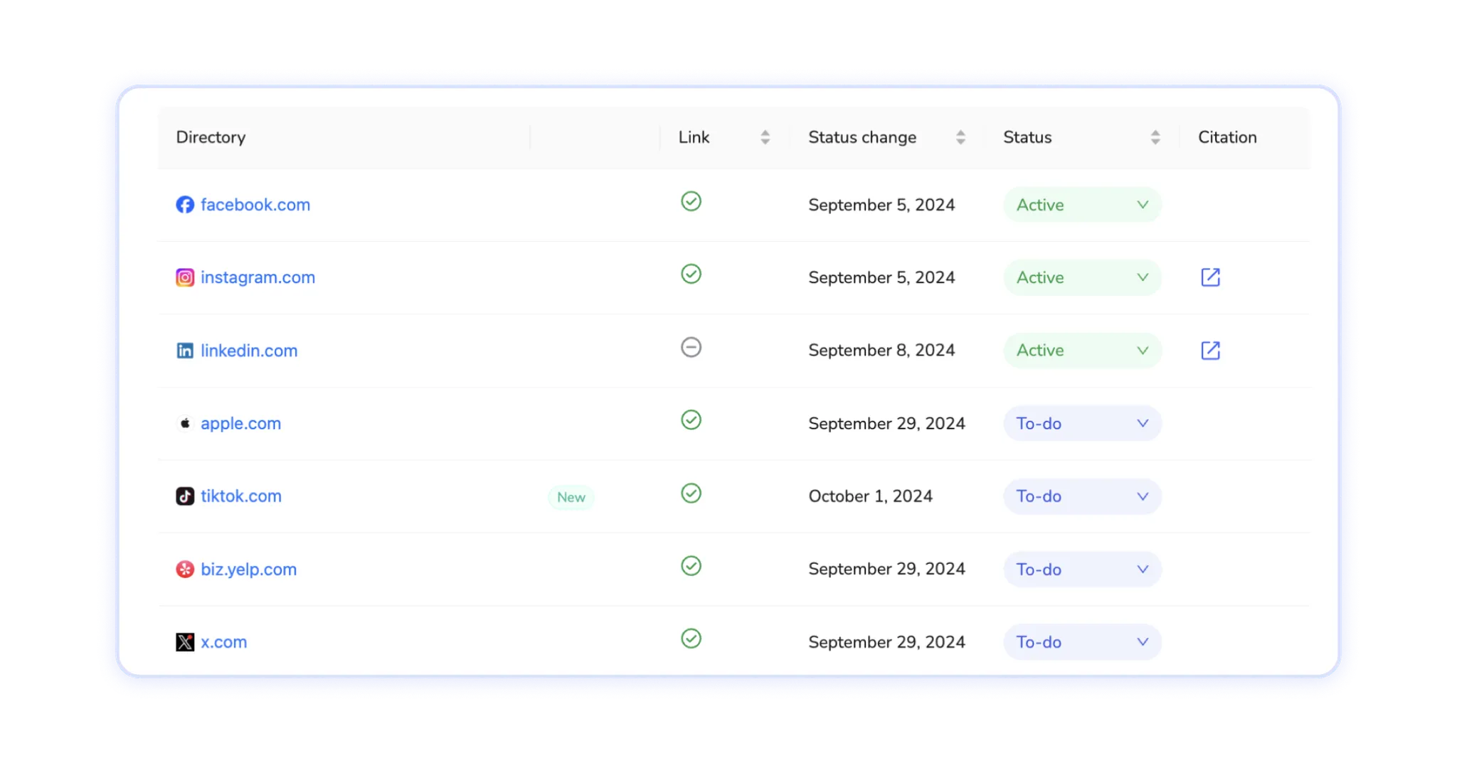 Une présence en ligne cohérente grâce à des citations NAP dans les annuaires et les médias sociaux est essentielle pour aider les clients potentiels à découvrir votre entreprise en ligne. Vous augmentez ainsi votre visibilité dans les résultats de recherche locaux.