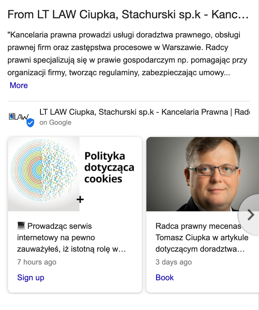 Étant donné que le secteur juridique est extrêmement compétitif et que les possibilités de faire de la publicité pour les services d’un cabinet d’avocats sont sévèrement limitées par la loi en Pologne, un profil d’entreprise sur Google est un canal de marketing essentiel pour nous. Nous savions que pour attirer de nouveaux clients, nous devions être meilleurs que la concurrence et, surtout, choisir judicieusement les mots-clés pour lesquels nous étions susceptibles de nous positionner.