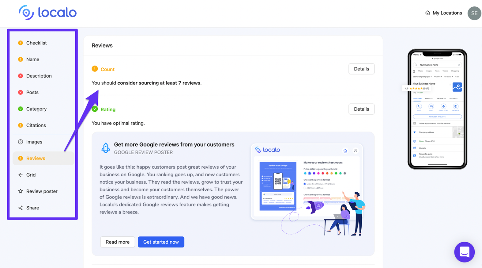 Localo m’a guidé à travers toutes les étapes nécessaires pour améliorer la visibilité de mon profil d’entreprise sur Google, et je leur en suis très reconnaissant. Après avoir sélectionné le mot-clé pour lequel je voulais être visible, l’outil a généré un audit personnalisé avec tous les correctifs et conseils pour m’aider à atteindre mon objectif.