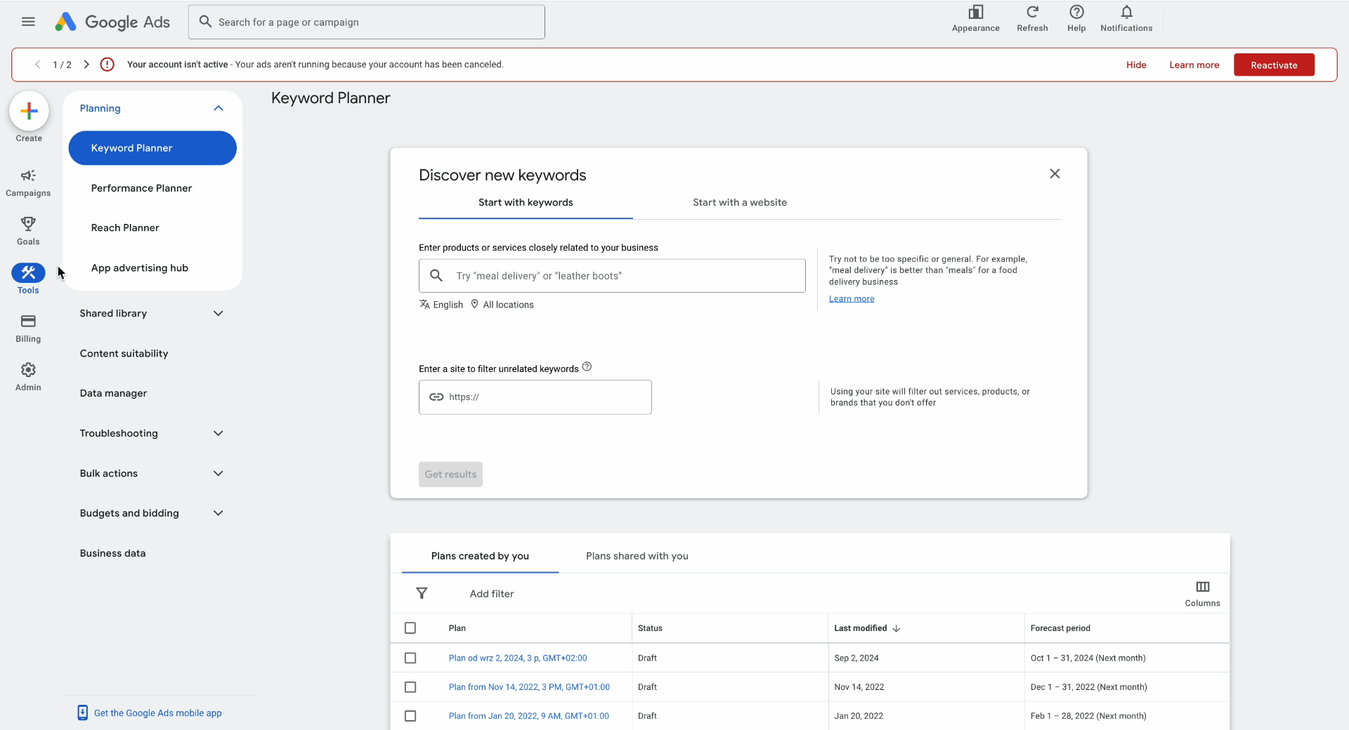 Skoro masz już kilka słów kluczowych, które chodzą Ci po głowie, czas sprawdzić, ile razy są one wyszukiwane w skali miesiąca. Najbardziej polecanym narzędziem do tego jest darmowy Google Keyword Planner.