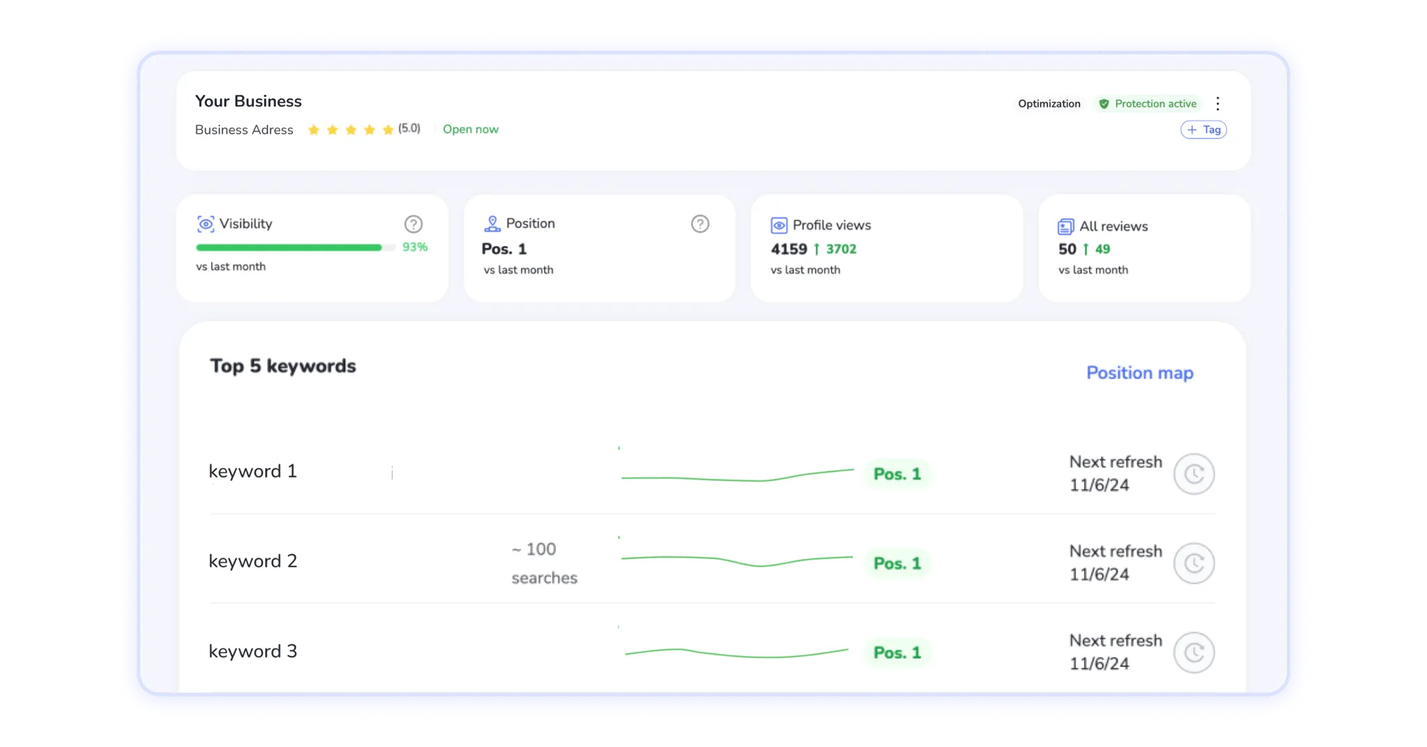 Com sua interface intuitiva e recursos abrangentes, a Localo simplifica o processo de otimização do seu Google Business Profile, acompanhando as classificações de palavras-chave e monitorando os concorrentes.