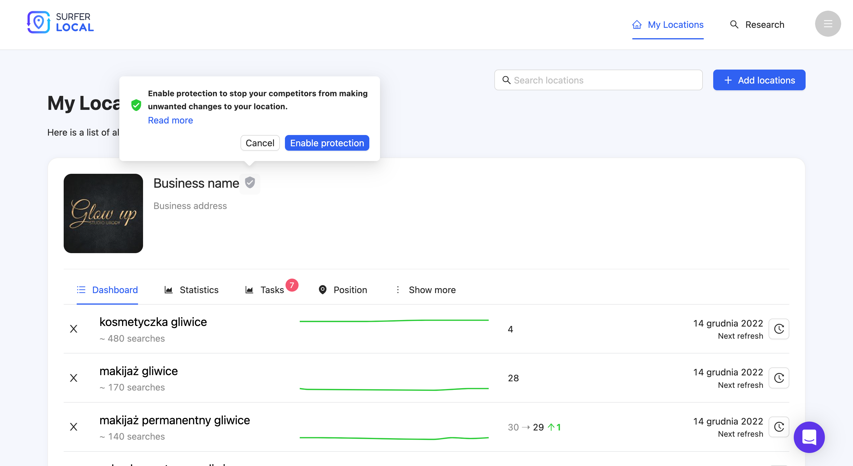 Na ferramenta Localo, na qual você pode aumentar a visibilidade da sua empresa concluindo uma porção semanal de tarefas, monitorando-a e acompanhando seus concorrentes, há uma proteção especial para o perfil da sua empresa contra a concorrência desleal.