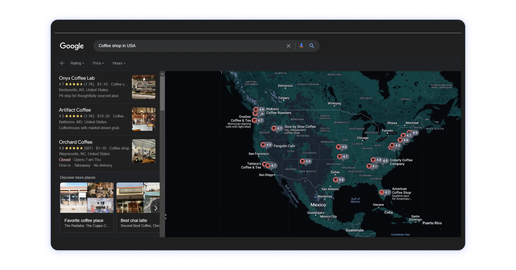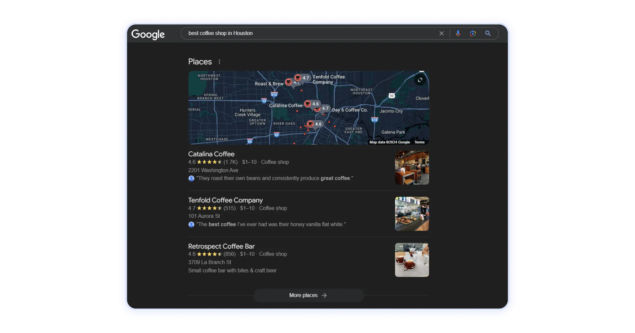 Em vez disso, ao otimizar seu website para a “melhor cafeteria em [bairro]”, você verá listagens de empresas mais altas: