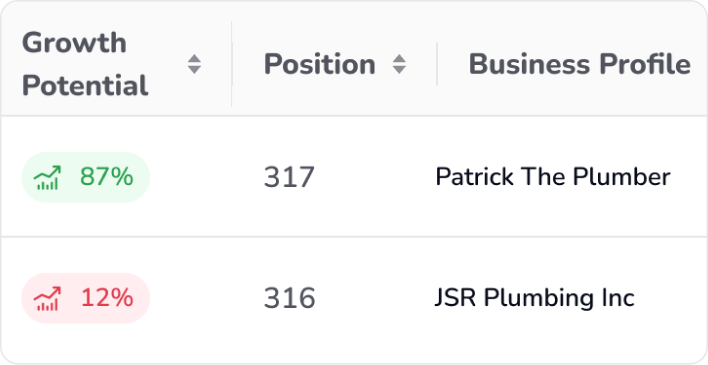 Verifique o potencial de crescimento de cada lead. Quanto maior a pontuação, melhor para você: esses clientes serão mais fáceis de ajudar e você verá resultados mais rápido. A empresa não tem site ou tem poucas avaliações? Esses são excelentes argumentos de venda.