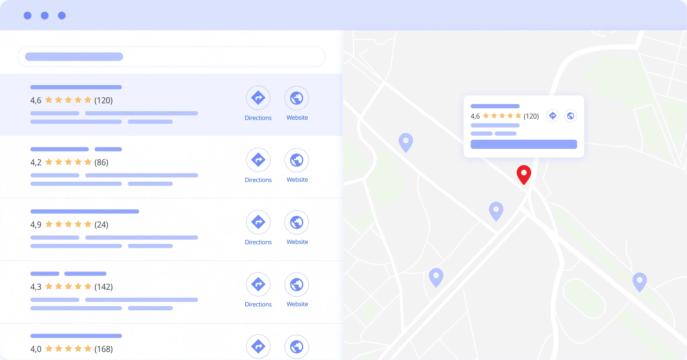 - One-click access to directions, calls, and your website
