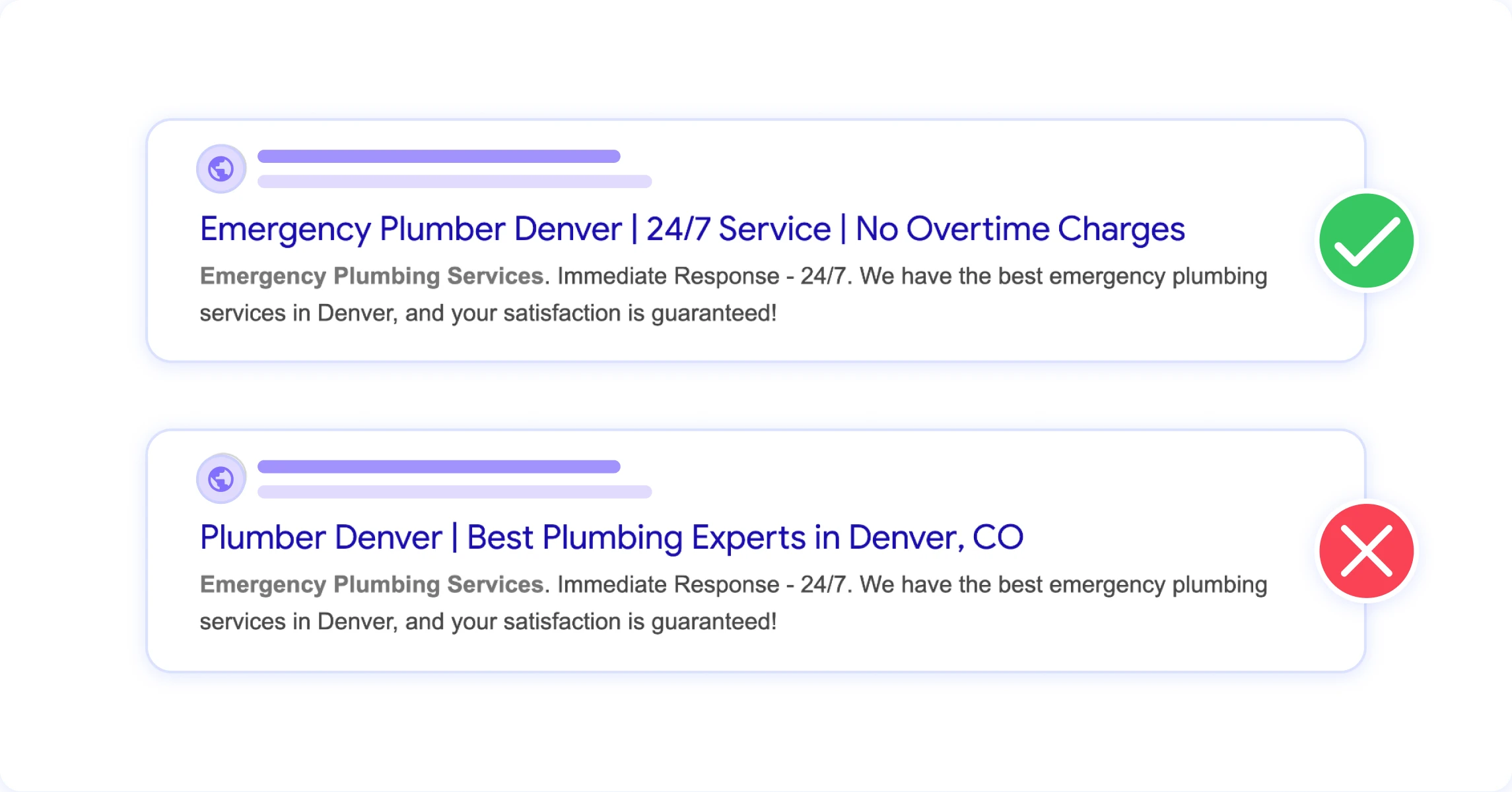 Your winning formula: Primary Keyword + Location + Unique Benefit = Click magnet.